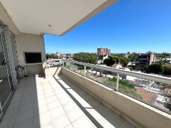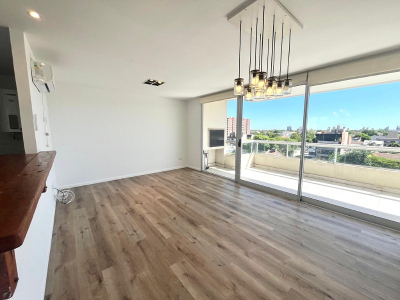 La propiedad se constituye de dos ambientes en semipiso dispuesto al frente con una superficie total de 53m2 y 11m2 de terraza, accesible desde el living, cocina y dormitorio. Se destacan, un amplio living comedor con barra de estar, moderna cocina equipada por bajo mesada y alacenas, baño completo con mampara de vidrio y estractor, confortable dormitorio con placard y cajoneras con accesibilidad a terraza externa. La terraza se encuentra dispuesta al frente, ofrece una agradable vista panoramica y cuenta con sector de parrilla. Dispone de cochera independiente de fácil acceso. Inmueble muy luminoso, edificado con materiales de primera calidad en cerramiento de aluminio y terminaciones. Cuenta con segunda terraza en sexta planta, privada, con posibilidad para deck, cuarto de guardado o quincho, con una superficie de 60 m2 aproximadamente. Edificio moderno con cámaras y alarma monitoreada, sin portero. Todo eléctrico. Calefacción por aire acondicionado. Excelente ubicación estratégica para puntos comerciales y lineas de transporte. Disponible apto crédito.
