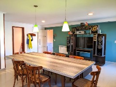 La propiedad se encuentra edificada en materiales de primera calidad, con una estética moderna en su frente y todos sus ambientes. La misma cuenta con amplio living comedor, con hogar a leña con detalles en madera durmiente, amplia cocina integrada con generosa mesada, alacena, bajo mesada, horno industrial y campana de acero inoxidable, y baño principal con bañera. Posee tres dormitorios de buenas dimensiones, dos en planta alta, y uno en planta baja, todos equipados con su respectivo placard, y acompañados por un segundo baño con bañera. En el sector de garaje pasante, cuenta con espacio para más de dos vehículos, y se encuentra equipado con cocina, lavadero, baño de servicio y parrilla. Con salida desde el mismo, posee amplio parque con sector de patio. Todos sus ambientes destacan por su alta luminosidad y comodidad, gracias a sus grandes dimensiones y ventanales en cerramiento de aluminio. La zona es residencial, lo que brinda un ambiente tranquilo para vivir. Además, cuenta con comercios y líneas de transporte a pocas cuadras brindando mayor comodidad.